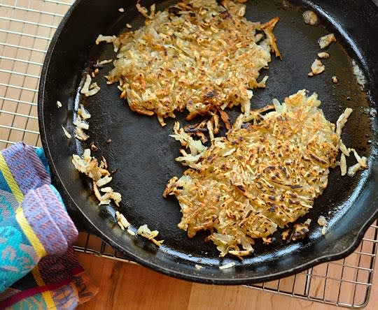 The hash browns can be prepared a day ahead and chilled until ready to cook or frozen for up to a month.